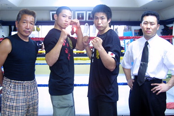◆藤原代表「今はまだビデオを見て研究している最中です。ムエタイと比べると、こっちには決まった技術の形(かたち)が無いね。素手のケンカのようなもんで、一瞬の隙も見せられない。いかにダメージを受けずに戦うかが大事。1、2Rから倒すような戦法を立てないといけない。パンチだと拳を傷めるので、接近戦で肘を有効に使えば勝てると思う。何でうちの選手が出ないんだ、って? うちの選手たちに断られたんだよ(笑) だから田中先生んトコにお願いしたんだ」