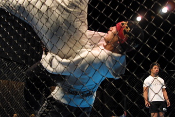 廣野剛康(和術慧舟會GODS)×井口摂(バトラーツB-CLUB)、飯田崇人(和術慧舟會A-3)×山崎剛(チームGRABAKA)の2試合が新たに発表された。 廣野×井口はDEMOLITION最大の因縁カード。井口はDEMOLITION初参戦時から廣野戦を要求し続け、04年4月の初対決では井口が判定勝ちをおさめている。その後井口は廣野の同門で修斗トップランカーの漆谷も撃破。遺恨の火を着けてしまった廣野が、井口を阻止できるか注目のカードだ。 廣野は会見に出席できなかったが、井口は「ルールも試合場も違うので、前回と同じ結果になるとは思わない。初対決のつもりで戦う」「押し倒されて負けてしまわないよう気をつけたい」と慎重なコメント。実際、腰の強さに定評がある廣野が、金網に押し付ける戦法を活用し、井口お得意の打撃を封じ込めれば、前回と違う結果となっても不思議ではない。井口は「越谷のバトラーツのジムの前の駐車場の金網に似ている。寒空の下で対策を立てたい」とコメント。この日も写真のようにスープレックスでスパーリングパートナーを金網に叩き付けようとしたりと、他の選手以上に積極的に金網の状態を確かめており、研究の成果を試合でどれだけ見せてくれるか楽しみだ。