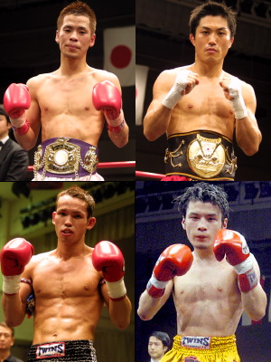 ▼ (3/18 up) 3/2の大会で開幕した-55kgトーナメント「MACH 55 First」が準決勝に突入する。NJKFバンタム級王者・藤原国崇(左上)と全日本キック同級王者・藤原あらし(右上)のW藤原&W王者対決は必見。J-NET同級王者・牧裕三(左下)は大会主催団体の意地を賭け、NJKF同級4位の真二(右下)を迎え撃つ。7月31日ディファ有明大会の決勝に残るは誰だ? 他にも3/2の大会のメインで激突したSHINと我龍真吾が王座を賭け再戦。前回は我龍が1Rで圧勝しており、王者・SHINにとっては正念場となる。J-NETフェザー級タイトルマッチ、砂田将祈(王者) vs. 尾田淳史(1位)、黒田英雄(J-NETウェルター級4位) vs. 井上哲(MA日本同級2位)の両ベテラン対決も決定している。