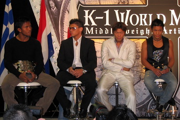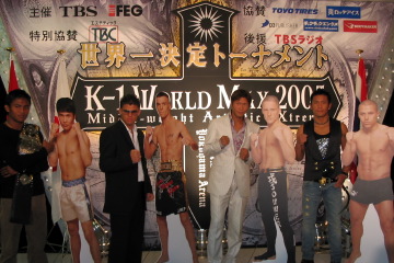 魔裟斗 vs. ザンビディスは03年の世界一決定トーナメント準々決勝の再戦。その時は魔裟斗が判定2-1でかろうじて勝利をものにしている。ファン投票でも魔裟斗の相手候補1位がザンビディスで、2位はサワーだったという。 「最近こういう言い方やめようと思ったけど、この会見に出席しているメンバーを見て、燃えて来ちゃった」と会見冒頭に語った魔裟斗。最近のザンビディスについて「計量を見た時点で、2年前より一回り体がデカくなってて、試合でもパワーが付いてて、スピードも前と変わらず速い」と評価。「パンチをもらうと倒れる可能性もある」と警戒し、「いかにもらわずに自分の攻撃を当てるか?」と戦略を語った。さらに「トーナメントなので、ローを蹴って来ないのがうれしい」とも発言。さらにレベルアップした今年のトーナメントでは、去年のように一回戦からダメージを溜めないことが王座奪還の鍵となると見ている様子だった。