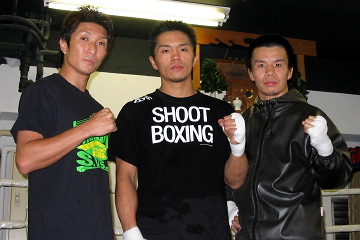▼ (9/23 up) 宍戸大樹、土井広之、石川剛司の3選手が22日、所属の東京・浅草のシーザージムでの練習を公開した。 宍戸は初のメインということで、KO勝ちができる新必殺技を考案。「決まれば一瞬です。向こうがある技を出せば、一発でKOできると思います」と豪語する。公開練習ではその技を見せなかったが、動きは良好で、日曜の試合に期待を抱かせた。下の記事のイム・チビンの1R KO予告に対しても、「向こうの目は節穴。自分も6月の試合の時からさらにレベルアップしている」と反論した。 土井は8月に世界ウェルター級王座を返上、嫌いだった出稽古にも行くと言っていたが、ひと際厳しいトレーニングで知られる、全日本キックの藤原ジムに週3回ぐらい出稽古しているという。「パンチの当て方や間合いの取り方、勝負に対する心構え等が勉強になった」といい、小林聡の16日の試合のサウスポー対策も手伝った。