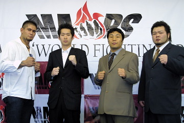 ▼ (9/30 up) 両国大会のカード発表記者会見が29日、東京・大久保の闘神塾にて行われた。 初参戦の金原弘光は、8月のMARS両国大会で瓜田幸造を1Rチョークで仕留めたマルセロ・ブリッド(ブラジル)と対戦。「両国は15年前のデビュー戦(91年12月22日・UWFインターの前田雅和戦)の場所。今も健在だとアピールしたい」と抱負を語った。 R.I.S.E.で活躍中のファビアーノ・サイクロンは総合初挑戦。グラウンドは矢野卓見から習っており、最近では中尾“KISS”芳広のセコンドにもついている。初戦の相手は同じ打撃系の桜木裕司だが、「打撃の選手と思わせないような試合をしたい」と話し、グラウンド勝負にも意欲的だった。 前回の両国は肺炎で欠場した高森啓吾は、大会直後に回復し現在は練習を再開。前回両国でアンソニー・辰治・ネツラーを秒殺KOしたビッグジム・ヨークと対戦する。「メインを喰うつもりで試合する」と高森は抱負を語った。 ミドル級(-83kg)トーナメント準決勝の組合せは、ダニエル・タベラ vs. 佐藤隆平、ブライアン・ラフィーク vs. 三原秀美に決定。勝者同士で決勝が行われる。(井原芳徳)