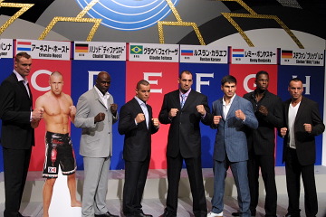 2番のボールを引いたフェイトーザは「4月のラスベガス大会で対戦予定だったが自分の怪我で実現しなかった」ことを理由にカラエフを指名。5番のバンナは映画の撮影のため試合翌日帰国したが、電話で抽選に参加。「王者と対戦したい」という希望から、シュルトの隣を選んだ。6番のボンヤスキーは「シュルトには去年負けたのでやり辛い。ホーストを止める役にはなりたくはなかった」ことから反対ブロックへ。7番のハリッドは「名選手とグローブを合わせたかった」ためホーストの隣に行き、全枠が決まった。
