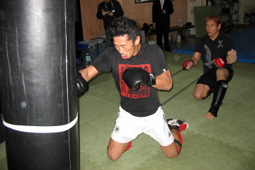 ▼ (2/19 up) 元ロシア軍特殊作戦部隊スペツナズ所属のウマハノフ・アルトゥール(SKアブソリュート・ロシア)と対戦するパンクラスismの道場長・伊藤崇文が19日、弟弟子の渡辺大介とともにP's LAB東京で公開練習を行った。 内容はキックボクシングのマススパーリング3分、総合のスパーリング2分、サンドバッグ1分。「練習は飽きる位やった。早く試合がしたい」という伊藤の動きは軽快だ。ウマハノフがパンクラスデビュー戦で宮崎裕治をジャーマンスープレックス一発で下した場面を意識してか、ジャーマンを防いで膝十字に行くという、UWF系の動きも披露。最後のサンドバッグでは縄跳びで渡辺に引っ張られながらパンチを打っていたが、これはパウンドを打つ時のバランスを保つ練習方法の一つだという。 「怖さは無い。マスコミの皆さんも幻想を煽っているけど、彼の弱点は気づいているはず。リング上に幻想は無い。現実があるだけです」と自信たっぷりの伊藤。2R以降、ウマハノフのスタミナが落ちると予想しており、「ロボットみたいな表情を焦らせたい。心の中をペレストロイカ(改革)してやる」と吠えた。パンクラスとBodogの提携をきっかけに増えるであろう、海外での試合にも意欲的で、名乗りをあげるためにも負けられない試合となる。