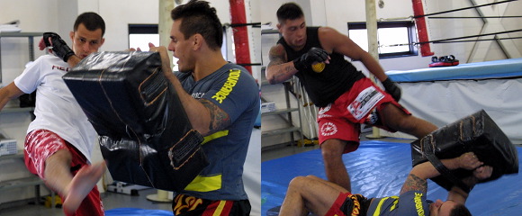 ▼ (2/25 up) Bodog FIGHTから派遣される、マカコ・ゴールドチームのグスタボ・PCとチアゴ・シウバの両選手が24日、P's LAB東京で公開練習を行った。両者とも柔術がベース。披露されたのは打撃だけだったが、身体能力の高さは伝わってくる。PCは右ミドルと右ハイが伸びやかなのが特徴的で、チアゴは踏みつけやサッカーボールキックも見せてくれた。