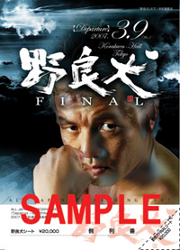 ◆「小林聡ファイナルマッチパンフレット バーンアウト」¥1,000 ・小林聡を追い続けたライター諸氏によるコラム“野良犬伝説” 野良犬デビュー時代、テーパリット戦、長野県ムエタイ連盟、団体エースとしての小林聡 ほか ・藤原敏男インタビュー 師匠・藤原敏男氏が小林聡VS前田尚紀を語る ・漫画家・てらかわよしこさんによる“野良犬人生すごろく” ・引退宣言からファイナルマッチまで、小林聡の116日 ・「小林聡はこんな人です!」ライバル・関係者ほか、各界からのメッセージ ・小林聡名言集「(野良)犬も歩けば棒に当たる」 ・小林聡全戦績 ほか、写真も満載の全20ページ特別版です! ☆当日は通常の大会パンフレット(全20ページ/¥1,000)も販売します。 ☆両パンフレットを一緒にお買い上げの方、先着100名様には「野良犬缶バッジ」、小林聡自主製作「野良犬シール」を進呈します(特典商品はいずれも非売品)。