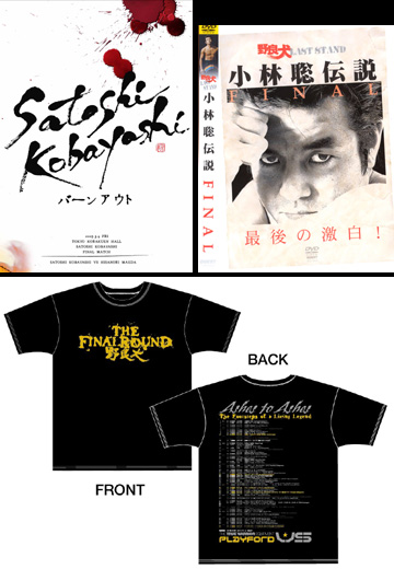 ◆「野良犬FINAL ROUND-Tシャツ」¥4,000 これまで小林聡Tシャツを数多く発売してきた「PLAYFORD」が、ファイナルTシャツを発売!前面プリント文字はゴールド、背中には小林の69戦全レコード入り。3.9会場限定発売となります。 ・サイズ:S・M・L ・デザイン:PLAYFORD ユアン・レイ ・前面プリント文字:ゴールド