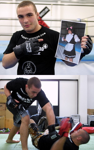 ラフィークは昨年10月のMARS両国大会以来の来日。同大会でのトーナメントでは決勝まで進出したが、急な減量の影響で体力が切れたことを反省し、今回は計量1日前にして82kgのミドル級のリミット体重まで落とした。以前2年近く滞在したことのあるブラジリアントップチームにも再び渡り、師匠のホアン・ジュカオン・カルネイロらの元で猛練習。母国フランスに戻ってからも週5日、1日5時間の練習を積んできた。 2日前に21歳になったばかりで、プロデビューからまだ2年。心身ともに充実した様子のラフィーク。パンクラスは今大会よりbodogの提供するオープンフィンガーグローブを採用するが、パンクラスに届いたばかりのグローブを装着すると、試合が待ちきれないとばかりにサンドバッグにパンチを叩き込む。ミット打ちとスパーリングで見せた動きの切れは上々。レスリングとボクシングの練習に力を入れてきたといい、約半年の間に大きく成長を遂げたようだ。 今回の相手・佐藤光留については「スタンドもグラウンドもうまい」と評価。パリ出身のラフィークが光留のメイド服のコスプレに憤慨するのでは、と光留は心配していたが「桜庭のようにパフォーマンスをする選手は好きだ。いいことだと思う」と爽やかに笑いながら話していた。