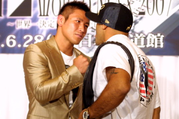 ▼ (6/27 up) 前日公式計量が11時より都内のホテルで行われ、アンディ・サワーを除く全選手が一回でクリアした。サワーは71.0kgを記録し、12時30分からの合同記者会見までにも落ちず、会見を欠席。再計量はクリアしたものの、来日前から高熱に苦しんだといい、コンディション面で不安を残した。 魔裟斗はいつものように70.0kgジャストでクリア。会見では「今の僕には失う物は無い。全力で勝負したい」と抱負。「相手の攻撃で一番気を付けるのは?」と聞かれると「(相手のJ.Z.カルバンが)水をゴクゴク飲んでるから、明日はどれだけ大きくなるのか心配ですね」と苦笑いを浮かべていた。去年10月のHERO'Sの時には80kg以上まで増えたと明かしていたが、明日の試合ではこの姿がどれだけ変わるのか…。 出席者で最も過激なコメントを吐いたのは、アンディ・オロゴン。「(対戦相手の)TATSUJI選手はいつも会見で『ぶっ倒す』と言っているのでビデオを見たけど、たいしてダウンを取っていないので安心した。彼には『嘘つきは泥棒の始まり』ということわざを教えたい」と挑発した。 当日券は16:00より販売。大会の模様はTBS系列にて21:00-22:54に放映される。(井原芳徳)