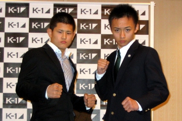 ▼ (2/18 up) K-1 MAX広島大会の特別試合として、20歳未満のワールドユースのHIROYAと藤鬥嘩裟の一戦が組まれた。二人は大晦日のDynamite!!のK-1甲子園トーナメントで戦う予定だったが、中学3年生の鬥嘩裟の出場が労働基準の問題で困難となり中止に。4月に高校生となるため、さっそく4月の広島大会での対決が実現した。HIROYAも高校のテストと時期が重なるが、学校に頼みテストの時期をずらしてもらい、広島大会に出場することになった。 とはいえHIROYAは1学年下・約10kg差の鬥嘩裟戦に乗り気ではなく「どうせ今回断っても組まれるから早めにやったほうがいい」という判断で引き受けたという。18日の会見でも「今の僕には勝てない」「前蹴りは強いと聞いているけど、自分の相手じゃない」と自信たっぷり。対する鬥嘩裟は「試合になればわかるんじゃないですか?」と反論し、「負けません」「会長に教えられた対策を練習しています」とHIROYA攻略に自信を示した。 今大会のユース部門は2月のような国際対抗戦では無く、日本人同士の戦いに。オープニングファイトで数試合追加される模様だ。MAX部門の16選手と組み合わせは来週の広島での記者会見で発表予定だ。(井原芳徳)
