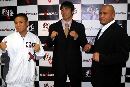 会見には出場の決まった日本人3選手が出席した。北岡は念願のビッグイベント参戦決定。「いろんな意味でリスタートの試合になる」とやや緊張した面持ちで語る。國保広報も「大きな舞台に一早く上がるべき選手だったのではないか」と北岡を高く評価する。 戦極ではライト級(70kg)に落としての初戦。1月にパンクラス・ウェルター級(77kg)タイトル奪取に失敗し「77kgで一回でも負けたら落とそうと思っていた。この世界で成功するには落とさないとダメ」と考えたという。対戦相手の希望は「特にはありません。戦極用意した選手とは誰とでも戦います」といい、五味の名前を出されると「自分の口から五味選手の名前を出すのは立場を考えると失礼。まだ考えていない」と謙虚に語った。今大会でライト級は2〜3試合組まれる模様だ。