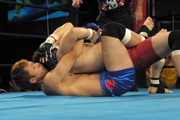 組技系大会で実績を残している長谷川が、組み付いてすぐバックを取りテイクダウンすると、そのまま胴締めでポジションをキープし、さっと腕十字に移行して一本。パンクラスのネオブラッドトーナメントに出場した鈴木を倒した長谷川は、29日のパンクラス後楽園大会のフューチャーファイトに出場することが決まっている。