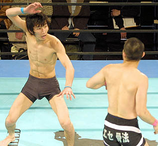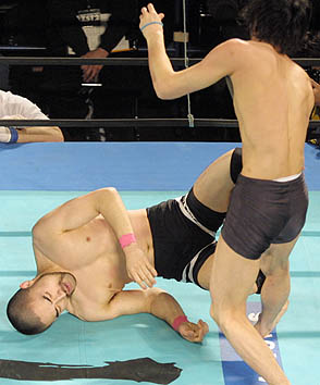 「さー、次はどっかで滑川とやって、渋谷との差を見せ付けて、渋谷とのリベンジマッチかな…」と。そう、それはつい一週間前のDEEP後楽園大会で、滑川vs渋谷がドローで終わった件を示唆しているに違いなかった。