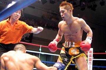 第4試合 トーナメント準決勝第1試合 サドンデスマッチ ○大月晴明(AJパブリックジム/全日本ライト級王者) ×大宮司進(シルバーウルフ/ISKA世界スーパーフェザー級王者) 3R 2'21" KO (3ダウン)