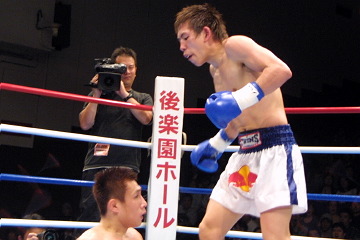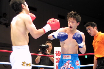 パワフルなパンチを見せる大月だが、今回は明らかに力んでおり動きが堅い。そんな大月に大宮司はジャブの差し合いからカウンターの右ストレートをヒット、一瞬後退しかけた大月だが、次の瞬間右をヒットさせダウンを奪う。試合開始から僅か30秒の出来事だった。大月はローを多用し低いガードのままプレッシャーをかけるが大宮司もスピードを生かした攻めで大月に得意のラッシュまで持ち込ませない。それでも大月がその豪腕で2回に再び右フックでダウンを奪う。これで大宮司の動きがガクッと落ちるが大月もそれほど手数が増えないまま最終回へ。ここで勝負に出た大宮司が一気に前に出るが、逆に打ち合いになったことで大月の本領が発揮される。3回開始僅か10秒、右ストレートで大月がダウンを奪い、さらに中盤以降左フックで2度のダウンをKO勝ち、決勝進出を決めた。