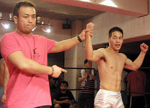 バックステージでも「マイクアピールっつうか、あれはご挨拶ですね(笑)セミでやった桜井選手とかの方がそりゃ様になってますから(笑)仕事もあるんですけど、まあこっちは趣味は趣味で、レベルの高い趣味としてやってるつもりなんで。30とっくにすぎて36なんですけど、体壊さない程度にがんばれたらなあって思いますね」と“オヤジ”をやたら強調するラサール。だが、シニアゆえの巧妙さ感じさせる独特の境地を確立しつつあるのは間違えない。