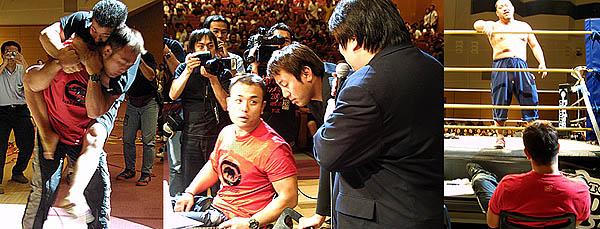 ※前半戦終了時に“理不尽男”入江秀忠が自前の拡声器をもって乱入。前回のマイクアピール劇を知ってか知らずか、客席は東京とは対照的に歓迎ムード。気を良くした入江は大仁田ばりに見栄を切って、次回9月15日大田区体育館大会での、エルガイツルールによるドスJr戦をアピール。大阪各地で集めたというファンの署名を佐伯代表に突き付けた。