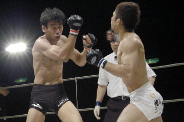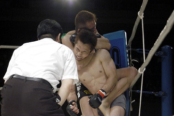 1R、パンチを交えながらのスタンド勝負でスタート。お互いテイクダウンを狙い差し合いが続く。後半、パンチの応酬から片足タックルをしかけた高橋、それを阿部が引き込んで下から三角を狙うもここでゴング。 2R、高橋がフロントチョークを狙いかけるも離れ際に金的にヒザを入れてしまい、タイムストップ。阿部の回復を待って再開。お互いパンチやヒザを入れながらの組み付き〜差し合い〜離れるの動きが繰り返される。後半、阿部のコンビネーションが決まり始め、2R戦い抜いた結果、有効なパンチと手数で上回った阿部が勝利を収めた。