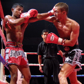 団体内に敵なしとなり、NKBフライ級王座を11/9付けで返上する川津が、本場ムエタイの現役王者と対戦、敗れはしたが僅差の内容で大健闘を見せた。 ダォパッスックは肩書きにあるとおりルンピニー・スタジアムのJr.フライとフライ級の二階級を制覇しており、現在はタイ国プロムエタイ協会のフライ級王者。タイではライト級より重いクラスでタイ人以外の外国人がルンピニー・ラジャダムナン両スタジアムの王座を奪取した例はあるが、最も層が厚いフライ級を中心とした軽量級は今だ難攻不落の存在。その中でトップクラスに君臨しているダォパッスックに、川津は「これまでのキック人生をかけて」挑むことになった。 ちなみにダォパッスックは、10月24日にルンピニースタジアムで試合を行っている(判定勝ち)。通常なら10日後の試合、それもいつもより重いウェイト(ダォパッスックは普段フライ級で試合をしている)というのは少なくとも日本では考えられないが、これまでの大物タイ人がそうだったように、ダォパッスックも日本人との試合をエキジビジョン程度にしか考えていなかったのも確かだろう。