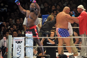 ◆ランデルマン「気分は悪くない。いいです。いい試合を見せられファンにとってはよかったと思う。自分には不満ですが。このラウンドはマリオの勝ちです。桜庭は抜くのが上手かったです。彼は水を得た魚のように素早く、動きがいい。本当にいい選手だ。自分ももっと練習して彼のようにグレートファイターになりたい。上腕の筋肉を試合中に痛めてしまい、最後の十字はしびれていて返す力がなかった。」