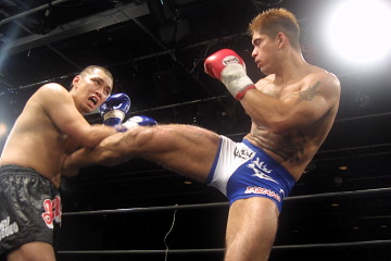 HAYATOは、ビジュアル的にも、技術的にもプロとしてまだまだ「伸びシロ」を感じさせる選手だ。今回、若手中心大会とは言え、彼をメインに起用したIKUSAの期待は、ずばりK-1 MAX進出。攻めに徹するファイトスタイルはプロとして好感が持てるし、技術的にもうすこし幅が出てくれば、MAX本戦の枠に食い込んでいくだけのポテンシャルはある。ただ、実際、過去3回のリザーブマッチ起用ではいずれも僅差の判定で黒星。それまで肘を含むムエタイスタイルで戦ってきた彼にとって、K-1の壁はまずこのルールとの戦いでもあったのかもしれない。 三度目の正直を実現するためにも、IKUSA小澤プロデューサーはHAYATOに過酷な壁を設定し続けてきた。DAVID戦を肘でなんとか逆転勝利に飾ると、今度は肘なしルールで総合系のハードパンチャー雷暗暴にぶつけて玉砕させ、8月には同じくMAX進出を狙うRISEの阿部勝とのサバイバルマッチを仕掛けるといった具合で、そのハードルは過酷を極めるものだったといえるだろう。