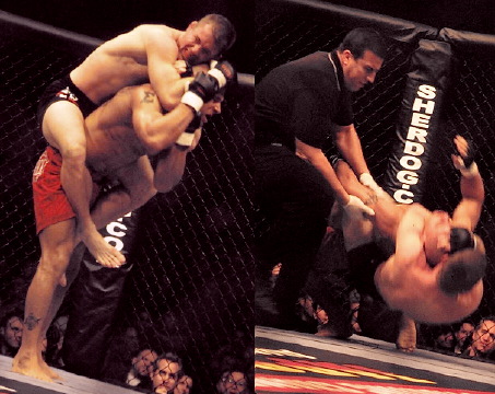 二十歳の若僧には負けられない。36歳のロックウェル自信とプライドだけが印象に残った試合だった。 開催会場となったモヒガン・サンのあるコネチカット州は、ロックウェルの本拠地マサチューセッツ州と同じニューイングランド地方。つまりロックウェルにとっては地元での試合だ。しかも相手は総合戦績2勝1敗のルーキーだとくれば、一気に畳み込むような試合運びで相手に何もさせない勝ち方をしなくては。素早いスピードと絶妙のタイミングですぐに相手の懐に飛び込み脇の差し合いからグラウンドに持ち込む一連のロックウェルの動きにはそんな意気込みが感じられた。下になったリゴウリも、冷静にハーフガードからフルガードに持って行き確かなディフェンス技術をみせたが、やはりまだロックウェルの方が一枚も二枚も上だった。立ち上がろうとするリゴウリの一瞬の隙を見逃さずフロントチョークで勝負を決めた。 こういった一方的な負け方を表現する時に英語では「彼は学校に連れていかれた(He was taken to a school)」という言い方をするが「ロックウェル先生から学んだリゴウリくん」という試合であった。余りにも一方的だったので、今後UFCミドル級戦線でロックウェルがどれだけいけるかはまだまだ判らないが、UFC 35でのユージン・ジャクソン戦も、敗れはしたがフロントチョークに捕まるまでは圧倒的に優位だったので、かなりの実力者である事は間違いない。(シュウ)