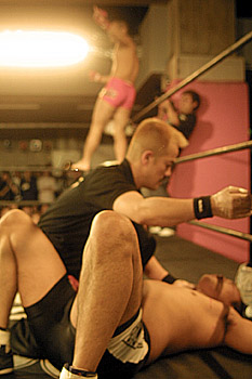 第3試合 -73kg契約 5分2R ×柳生正樹(総合格闘技闇愚羅) ○宮田卓郎(名古屋ブラジリアン柔術クラブ) 1R 1'12" TKO(マウントパンチ)