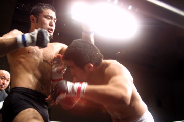 平山が2Rに腕十字とグラウンドパンチでチャンスを得て、僅差の勝利。決定力が加われば、2004年の飛躍が期待できる。
