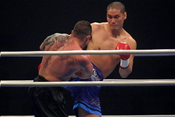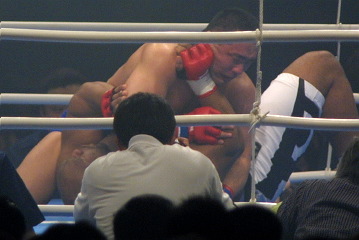 2月の沖縄大会との連戦となるボンドラチェックは、富平の右ローをもらい続けるうちに失速。2R終盤から攻め込まれ、3R開始早々、膝蹴りでダウンを喫する。その後も富平に追い込まれロープにもたれてグロッキー状態。富平が3R目を制し完勝した。