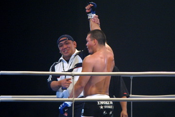 ◆サップ「不完全燃焼で残念だ。もうちょっと技を見せたかった。だがレスラーはあのように一定のポジションのまま攻めて来るということを試合を通じて体感できたし、私自身もスタミナがアップしたことを皆に証明できたと思う。(下になった時に焦りは?)いや。とても落ち着いていたよ。スミヤバザルが体が硬く緊張していると感じられたので、彼が後々疲れて来て、そのうち自分が有利になるだろうと思っていた。(次のMMAは?)スミヤバザルと再戦して完全決着したいね。」