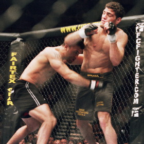 ディアスは02年12月の修斗NK大会に来日し、弘中邦佳に敗れたものの、判定は1-2のスプリットだった。その後もパンクラスに参戦するシーザー・グレイシー勢のセコンドとして度々来日している。まだ弱冠20歳の伸び盛りで、去年9月のUFCデビュー戦で一本勝ちを果たしたことが評価され、UFC4勝1敗でこれまた勢いのあるローラーの相手に抜てきされた。 試合は両者の勢いが相乗効果を生むような熱い打撃戦に。右のパンチがクロスすると、両者揃ってニヤリ。ディアスは手を広げてアピールしふてぶてしい態度を取る。だが単なるアピールに終らず、ディアスはすかさずノーガードからの右ストレート。ローラーは思わずふらついてしまう。一旦ディアスがローラーを金網に押し込み小休止するが、またも両者が離れるとパンチの相討ち。今度はローラーがディアスを金網際に追い詰め、右フックをディアスのアゴに叩き込む。 両者ともクリーンヒットも手数も互角のまま2Rに突入。1R同様互いに一歩も譲らぬ打撃戦が続く。だが1分過ぎにローラーが左右のパンチの連打で前進してきたところで、ディアスが下がりながら放った右フックがローラーのアゴに炸裂。ローラーは前のめりに倒れ、試合終了となった。 キャリアに勝る同じストライカータイプのローラーを粉砕したことで、ディアスの株価はまたも上昇。前回は腕十字、今回はKO勝ちで、立ってよし寝てよしの選手であることもアピールできた。BJペン、ヒューズ、ニュートン、ベヒーシモ。今度の獲物は上位陣か? 次戦が楽しみだ。