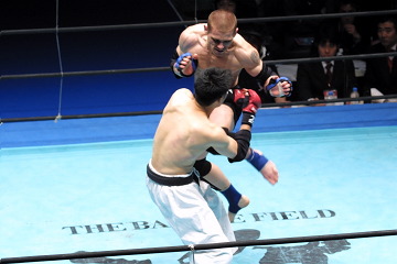 所の最大の魅力は、ひたすら前へ前へと攻めるアグレッシブさとハートの強さ。一度レミ−ガの膝に沈んでいるにも関わらず、全く恐れる素振りを見せることなく組付き、真っ向勝負に挑む。最初のヒールホールドは逃げられてしまい、スタンドの膝をボディにもらい苦しむも、前進ファイトは止まらず。そしてフィニッシュは三角絞め。「矢野さんが叩き付けられて失神したけど、持ち上げられても外さないつもりでした。矢野さんの試合がヒントになりました」と語るように、所の執念のこもった三角でついにレミ−ガがタップ。見事なリベンジ劇に会場は割れんばかりの歓声で包まれた。 ZSTのエースといえば小谷直之だが、ここ最近の試合のクオリティと、観客の湧かせ方を見る限り、所の方がエースと言ったほうがいいんじゃないかと思う位目ざましい活躍をしている。そのことも意識してか、所はバックステージでのインタビューで、9月大会で小谷と対戦したいとアピールした。小谷も「契約体重の問題さえクリアできればやりたい」と前向きだ。