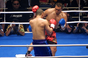 小柄な子安がスピーディーな動きで堀をかく乱し、ミドルとローを当て続ける。だが堀のストレートが当たり始めると次第に失速。3Rは堀のワンサイドで、残り40秒に堀が左ストレートでダウンを奪い判定勝利をおさめた。