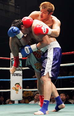 センデッドは治政館のトレーナー。31歳で、ムエタイ180戦135勝(50KO)42敗3分のベテランだ。試合では朴にほとんど攻めさせないまま、左ミドルを当て続け完勝。肘無しルールながらもテクニックの差を存分に見せつけた