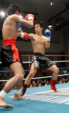 全日本キックに降矢康勝という一人の中堅選手が帰ってきた。降矢は前々回の加藤啓明戦の時も仕事が忙しく、1年半ぶりの試合だったが、今回はさらにブランクの長い2年半ぶりの復帰となった。そのブランクを考えれば当然、現在ランキング9位の梶村のいい引き立て役に終わるのではと戦前は予想された。 前半こそ梶村の首相撲からのヒジで降矢は苦戦するが、徐々に試合感を取り戻すと後半、攻め疲れた感のあった梶村に細かいパンチを確実にヒットさせる。これで形勢を逆転した降矢は延長に入ると、飛びヒザでペースを掴み、本戦同様にパンチで試合を優勢に進め判定勝ちを拾った。 降矢は現在34歳。彼に限らず、格闘技界には選手業以外に他の仕事を持つ選手も多い。その中には結婚して子供もいる人間も。降矢もそんな一人だ。今回も普段、営業職に携わる降矢の怪我を心配する奥さんの反対を押し切る形でリングにあがっていた。 「僕みたいにサラリーマンをやりながら家庭や子供の面倒を見ている選手はけっして少なくないと思うんです。そういう選手たちにも自分みたいな選手が頑張ることで、年齢やブランクがあってもランキング戦やタイトル挑戦もできるんだよということを証明したかった」 ちょうどこの日、大月晴明の王座返上により「ライト級王座決定トーナメント」が11月大会よりスタートすると発表された。降矢にもランカーの梶村を破ったことで千載一遇のチャンスが巡ってきた。降矢がここに加わるかは、まだわからない。しかし、ここは彼が存在をアピールする絶好のチャンスにも思える。出場メンバーの発表を待ちたい。(永田)