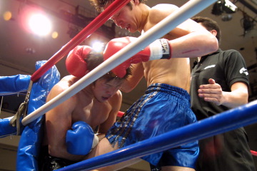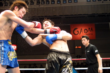 第2試合 フェザー級 サドンデスマッチ ○竹村健二(名古屋J.Kファクトリー/4位) ×ラスカル・タカ(月心会/5位) 3R 0'32" TKO (レフェリーストップ:肘による額のカット)