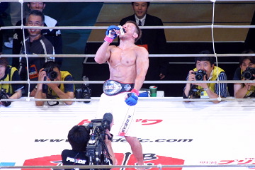 ◆五味「最後KOで締めれて良かったです。相手はパンチも良かったですね。試合間隔が相手のほうが短いですし、自分の方が半年休んで、精神的にも肉体的にも受けに回る気持ちになっていました。あとはリーチもありますし、ムエタイ式の、日本のボクサーとは違った打ち方なんですね。最初はその距離になってしまたっという感じですね。彼は前半全部ぶつけようという作戦だったんじゃないですかね。 (最初一発もらって焦りは?)左ストレートとフックの中間のようなのを目にもらったんで、ちょっと焦りましたけど、まあ、畳み掛けて来なかったんで大丈夫でしたけど。アゴにもらってぐらついたとかじゃないので。あと何故か相手が流血してたのでちょっとリラックスできましたけどね。 (最後は完璧なKOでしたけど?)どっちのフックか覚えていないんですけど(笑)。セコンドの加藤先生から『チャンスを見て、フックで行っていい』と言っていただいたんで。最初ストレート勝負してたんですねぇ。相手の方がリーチありますし、相打ちになっても、彼、左ストレートがかなり良かったんで。で、加藤先生の『もう一歩踏み込んで、そろそろガードが下がるから、フックでいい』と言うことで行こうと決めてましたんで。 (最後は狙って打った?)うーん(苦笑)。僕は言われたことをとにかくやってしまうので。まあうまく懐に入れましたね。あのグローブは効きますね。