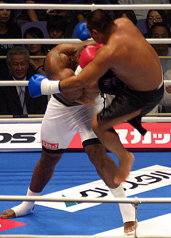 ただ、サップと言う規格外の体躯を持った相手の、津波のようなぶちかましファイトに対し、正面から立ち向かう姿勢は佳しとしたい。これまでサップを前にした日本人選手が「吹き飛ばされる」「かいくぐる」かのいずれしか対処の方法を持たなかったわけで、仮にも日本人の選手が「逃げも隠れも」しないで、気迫面でも体格面でも当たり負けしないという、「絵面」を作り出したのだから。今後も中尾が、K-1ルールでの戦いを続けると言うのであれば、話はまた違うが。