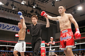 互いになかなか決め手となる攻撃が出せなかったが、3R終盤にパンチの連打を当てた中尾に軍配が上がった。