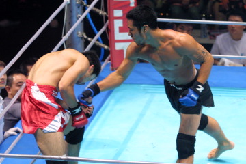 序盤、ダリウスのサウスポーからの強烈な左の蹴りを浴びてしまった小次郎だが、次第に感覚をつかむようになり、ダリウスの打ち終わりやカウンターで右ストレートを当て、流れを引き寄せる。 2R開始早々、ダリウスは右フックで小次郎をスリップさせる。しかし直後、小次郎の右フックでダリウスも腰が一瞬沈み、一撃決着も近いのではと思われた。ところがその一撃はバッティング。パンチの打ち合いで両者の頭がぶつかり、小次郎は右まぶた、ダリウスは生え際を切ってしまう。結局裁定はノーコンテスト。 ダリウスは2試合連続でバッティングを引き起こしている。今回は小次郎にも非があるとも思えるが、前のめりになりがちな戦い方を修正しないことには、今後のオファーにも影響が出てくるだろう。