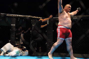 第7試合 無差別級契約 5分2R ○アラン・カラエフ(ロシア/マルプロジム) ×橋本友彦(DDTプロレス) 1R 0'27" TKO (レフェリーストップ:右フックの後のグラウンドパンチ連打)