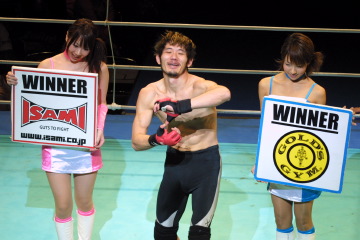 1Rに金原の三角に捕まりそうになった佐東だが、2R序盤、下になった状態からアームロックを極めた。試合後は念願のマイクアピールとポーズでZSTラブを表現した。