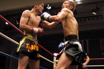 互いに単発の攻めで組み付きの多い展開となったが、3Rにテコンドー出身の凱斗がバックブローや胴回し蹴り等も駆使。手数で上回り勝利をもぎ取った。