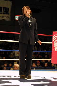 ※第3試合終了後の休憩明け、早千予がリングに上がり挨拶。「今年からMAのリングに戻ってきました。末永く応援してください」と話した。