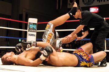 第14試合 メインイベント 58kg契約 3分3R ○菊地剛介(伊原/日本フェザー級王者) ×大刀国秀(藤/日本フェザー級3位) 2R 1'30" KO (左ローキック)
