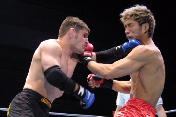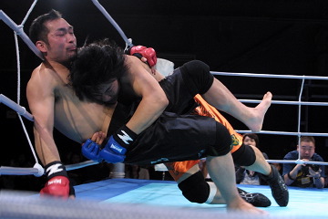花田のタックルを次第に読むようになった鈴木が、右アッパーを合わせてKO勝ちをおさめた。