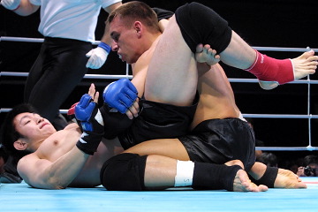 寝技で上下が何度も入れ替わるが、両者とも極めのチャンスが少なく、淡々とした攻防のまま時間切れとなった。