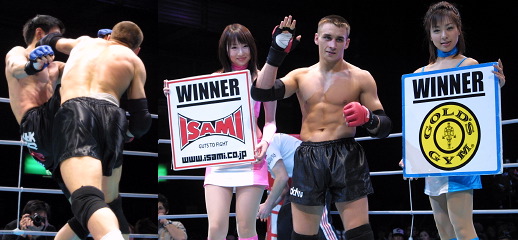 稲津はレミーガを倒すとマウントからの三角絞めで先手を取る。だが所と寝技を練習するようになったレミーガは腕を引き抜いて脱出。スタンドに戻り右と左のストレートを連続で当て豪快に稲津をKOした。 マイクを持ったレミーガは英語で「魔裟斗と戦いたい。谷川さん、前田さん、お願いします」と、リングサイド最前列に座っていた両氏にアピールした。両選手とも4/5のK-1 MAXの世界一決定トーナメント開幕戦への出場が確定しており、そこでの激突があるか注目が集まる。