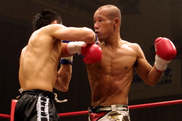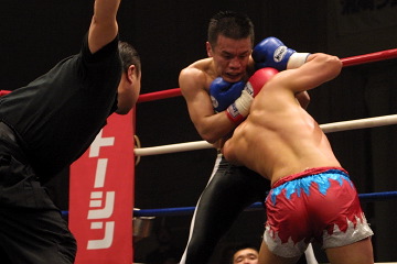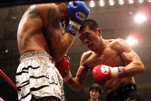 テコンドー系の伸びのあるハイやミドルを出すヨンジュンに対し、緒形は右ローを効かす。パンチの打ち合いで逆にもらう場面もあったが、2Rからは左ミドルとボディブローも駆使すると、ヨンジュンのガードが下がるように。