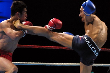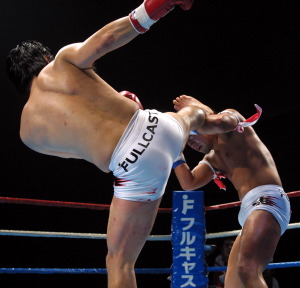 1R序盤、上松が膝蹴りの後、片足立ちの不安定な状態でKAWASAKIに右フックを当てられ、ややスリップ気味に倒れたところダウンを宣告されてしまう。上松はパンチ、ハイキック、膝蹴りで必死に追い上げ、2R目はポイントを取り返す。KAWASAKIは2R中に2度マウスピースを吐き出し苦しい様子だったが、随所できっちり攻撃を返し決定打を与えず。3R終盤には左ストレート2連発でダウン寸前まで追い込み、逃げ切りに成功した。